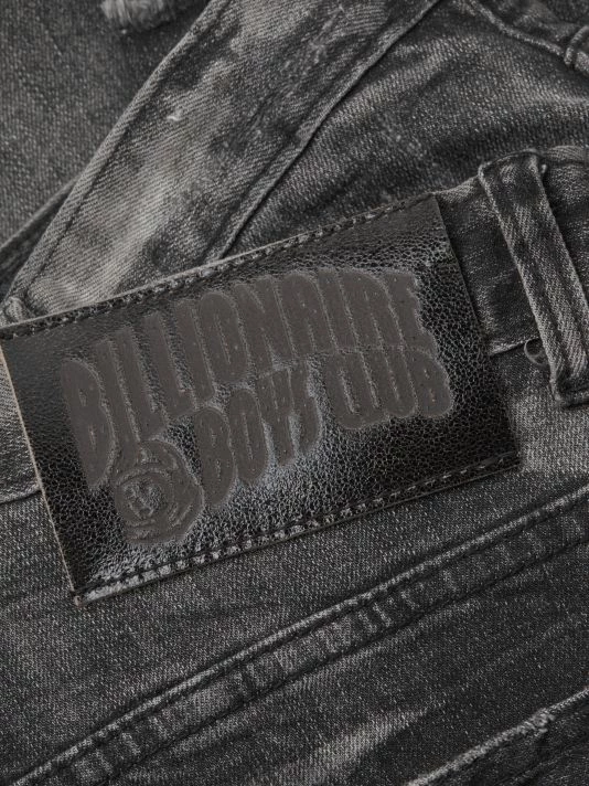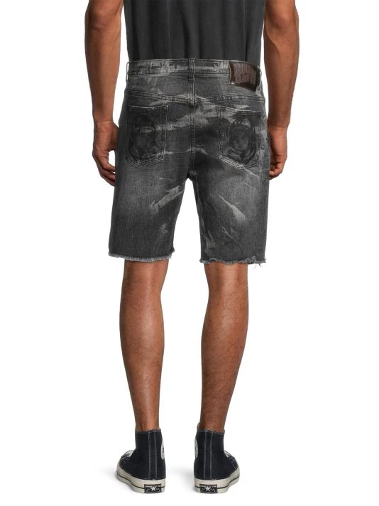 These jean shorts in a faded finish are embroidered with the signature astronaut at the back pocket.
