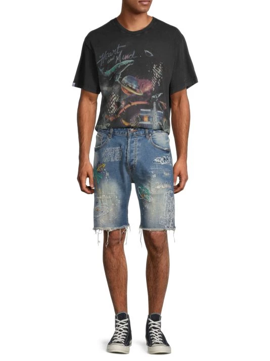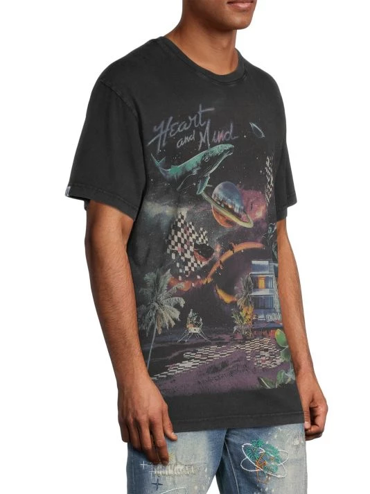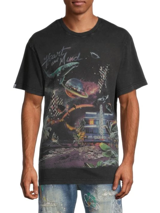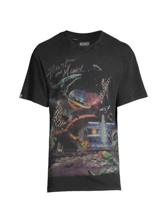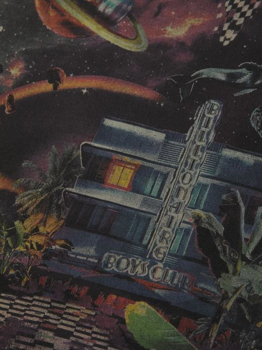 Crafted of soft cotton, Billionaire Boys Club’s acid wash shirt showcases a retro science fiction print.