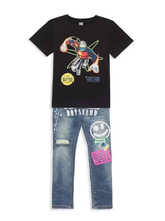 This classic short-sleeve jersey T-shirt with a ribbed crew neckline flaunts a superhero-inspired character graphic on the front.