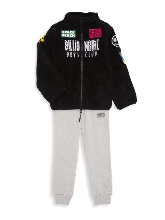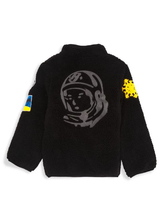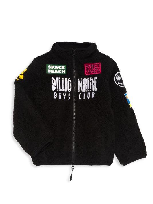 Contrast graphics embellish this plush fleece jacket, designed with a bold logo across the front.