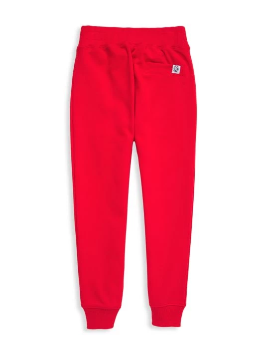 A whimsical logo graphic adds a pop of color to the front of these casual sweatpants.