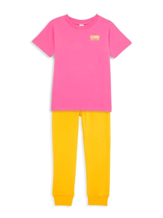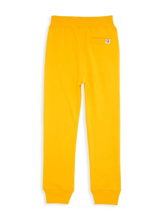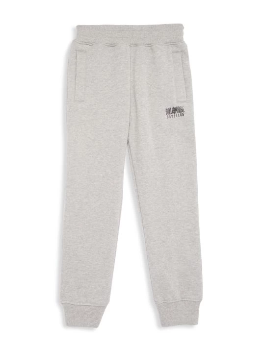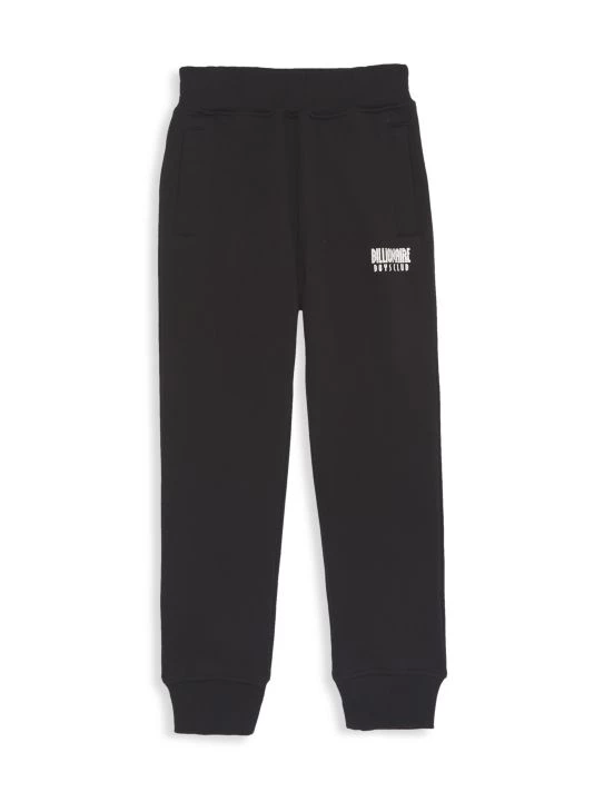 Fleece joggers are adorned with a sparkle print logo on the front.
