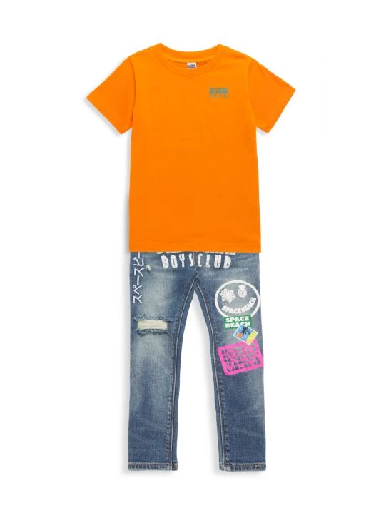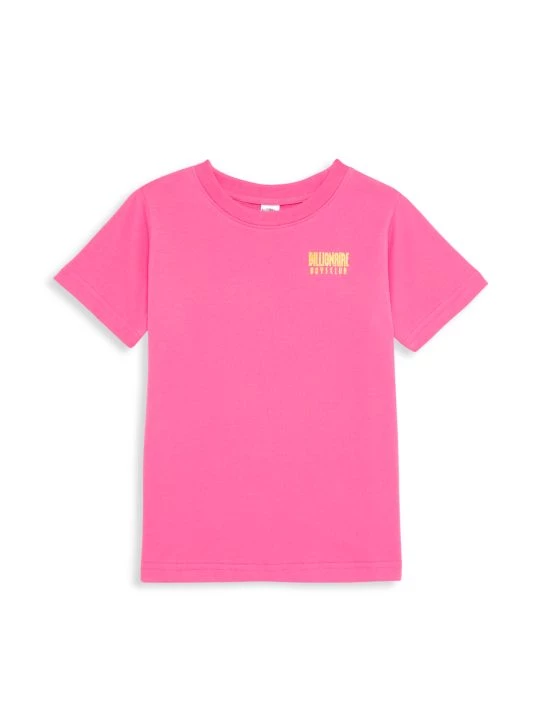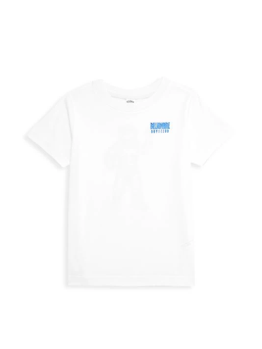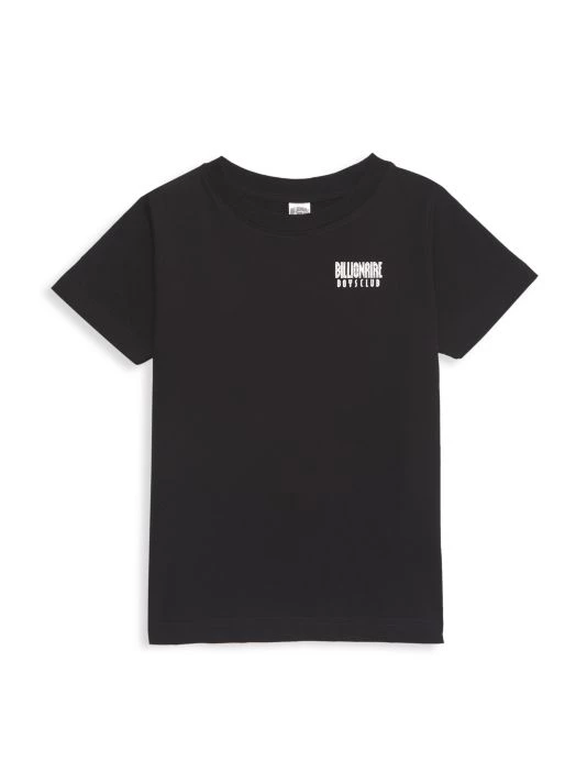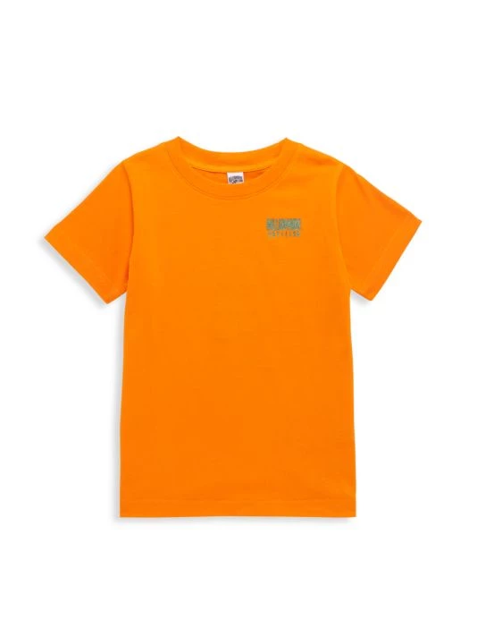 Classic-style crewneck T-shirt is adorned with a sparkle print logo on the chest.