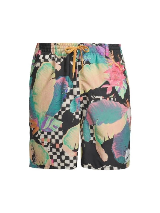 Crafted of nylon the Paradise swim trunks by Billionaire Boys Club are adorned with a floral and geometric motif. They are finished with a drawstring waistband and a back zipper pocket.