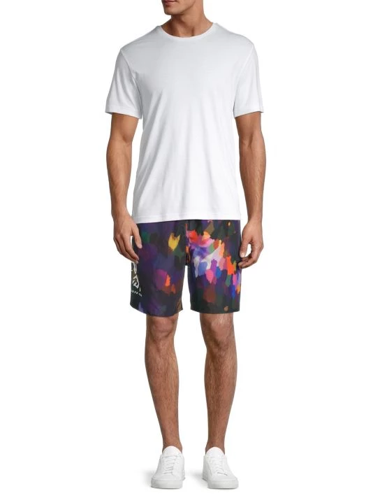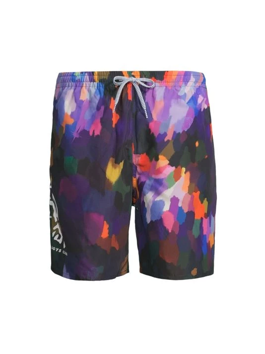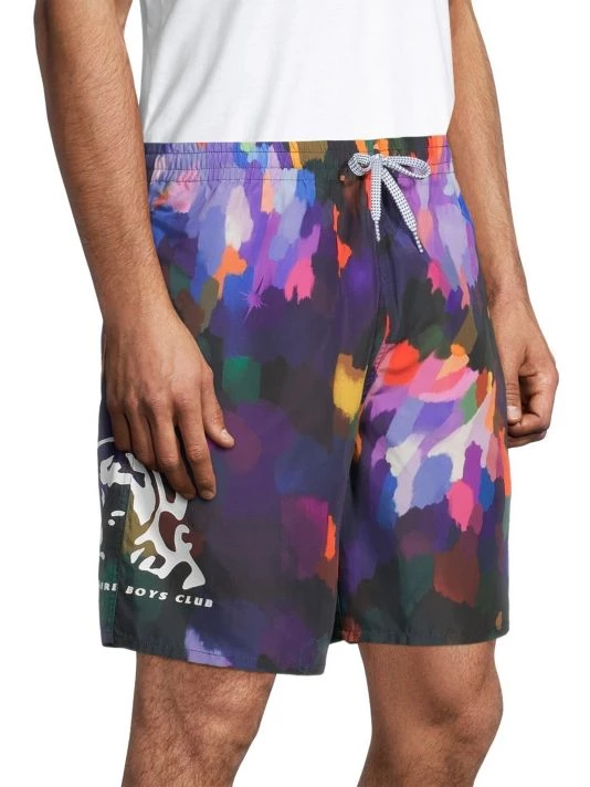 These woven shorts with an adjustable waistband are adorned with a Rembrandt-inspired paint brushstroke print.