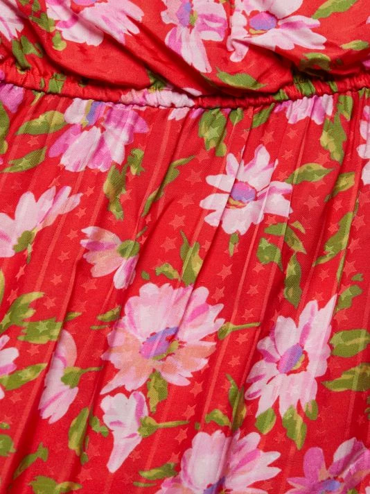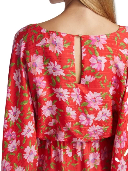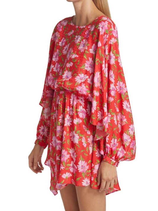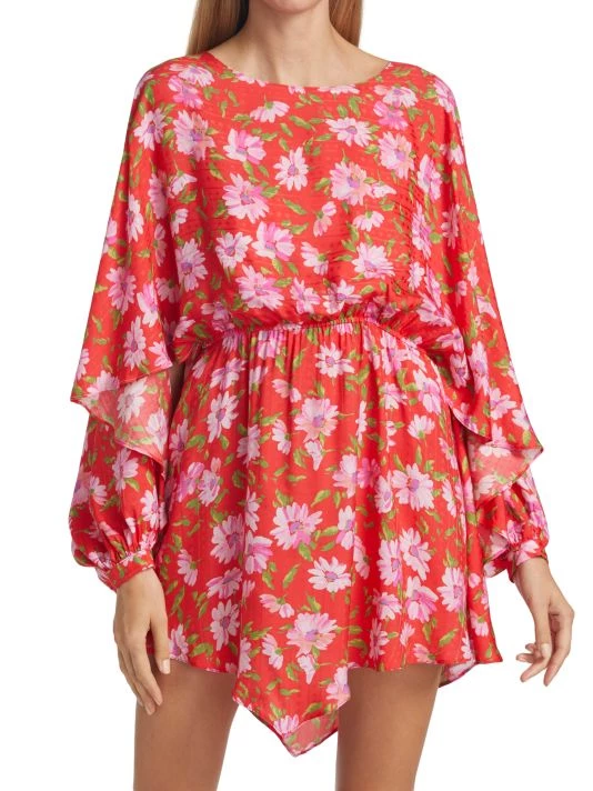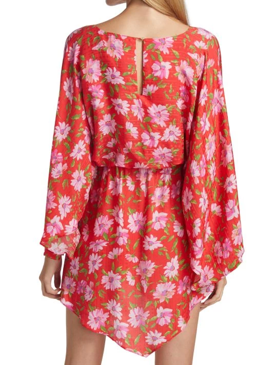 Painterly floral mini-dress with defining puff sleeves and an asymmetrical hem.