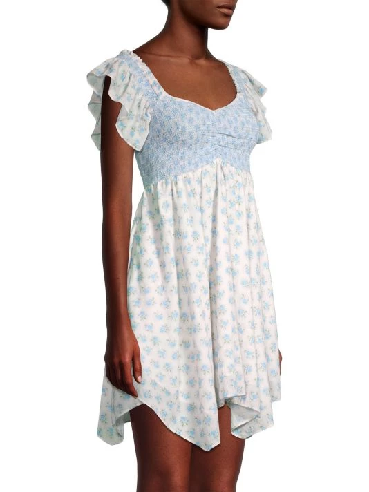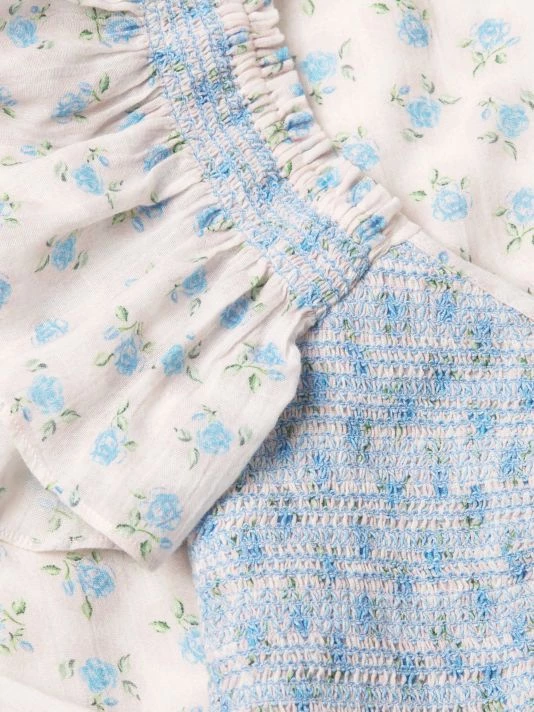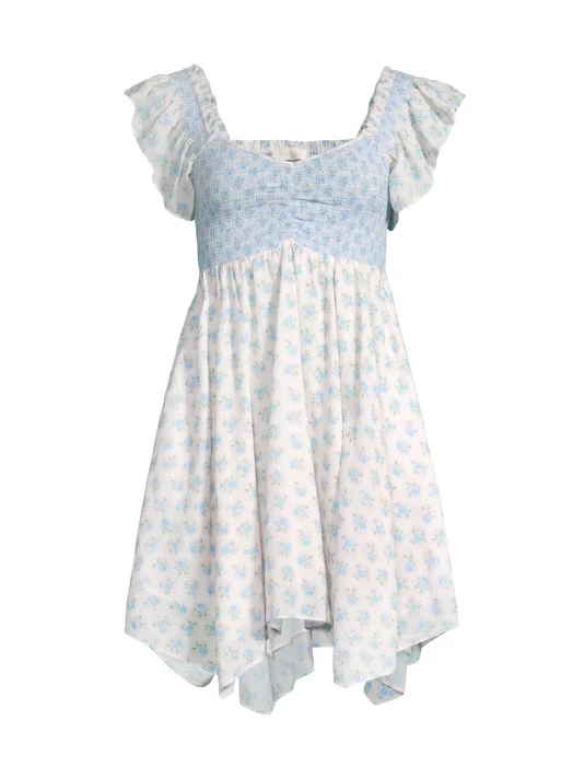 Flaunting voluminous ruffled sleeves, the Athalia dress by LoveShackFancy fits and flares from the smocked bodice to the asymmetrical hem.