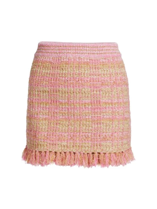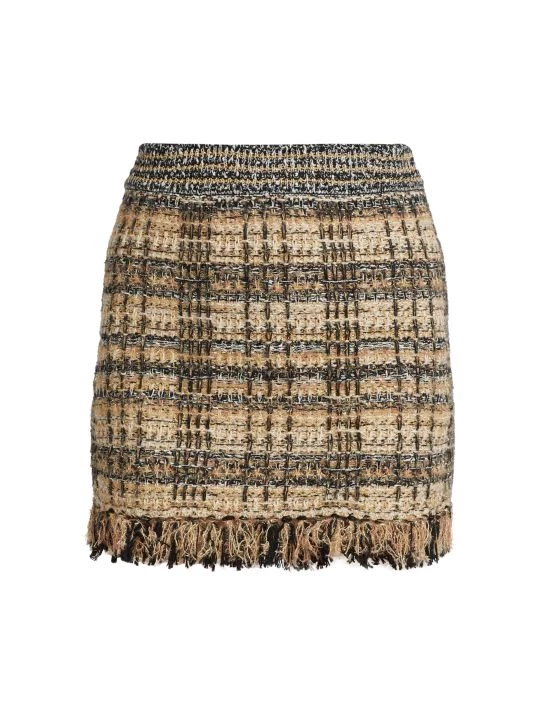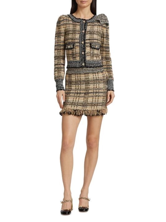 A ribbed waistband lends casual appeal to LoveShackFancy’s Balsam mini skirt, crafted from plaid tweed with a subtle metallic finish.