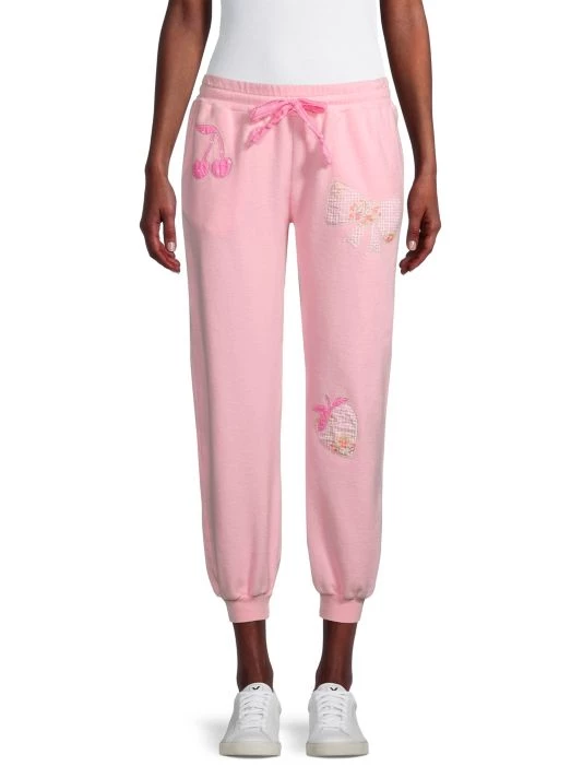 These whimsical sweatpants feature patch details throughout the design, crafted with a relaxed fit.