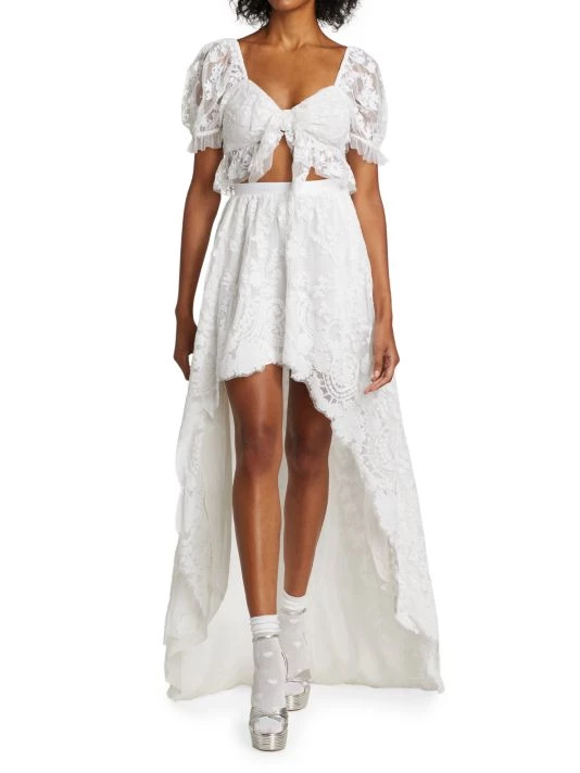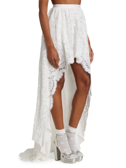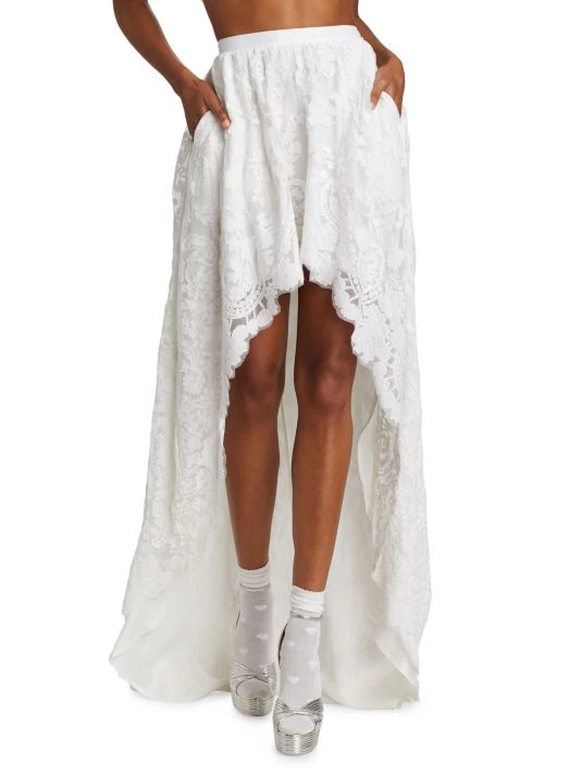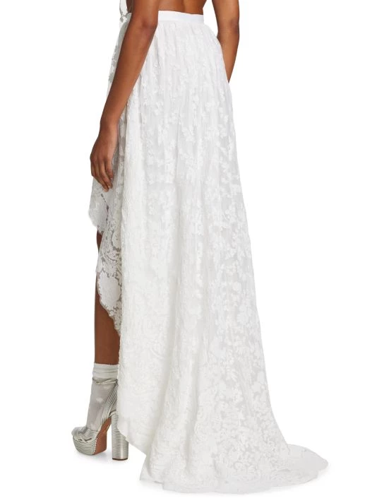 From the Bridal collection. Elegant floral embroidery elevates this high-low maxi skirt.