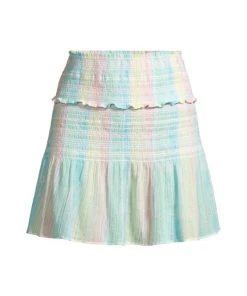 Smocked miniskirt adorned with a blurred stripe design, trimmed with ruffle detail at the waist.