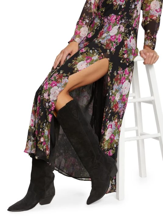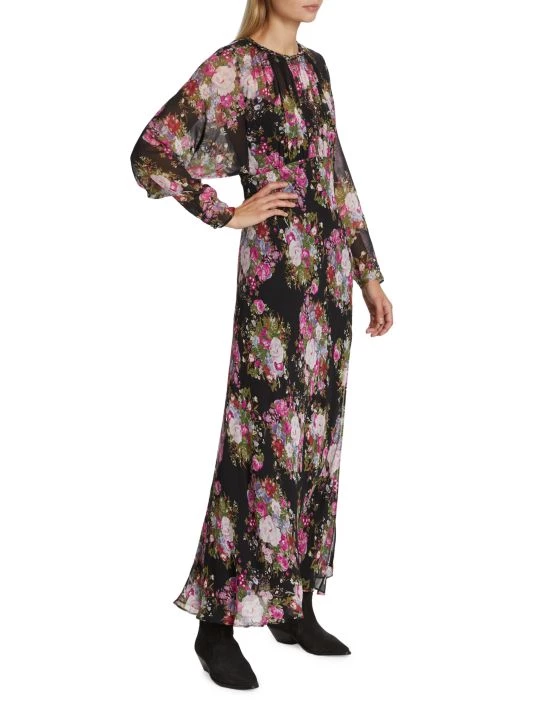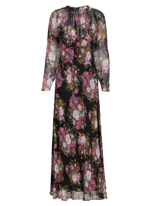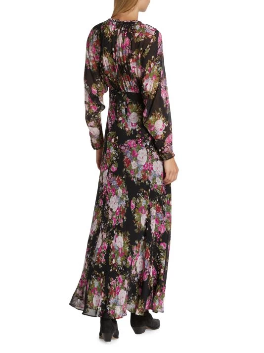 Decorated with a floral print, LoveShackFancy’s Daya maxi dress features dolman sleeves and a round neck with braided trim.