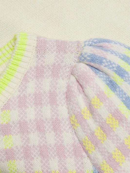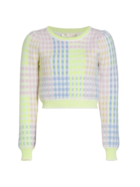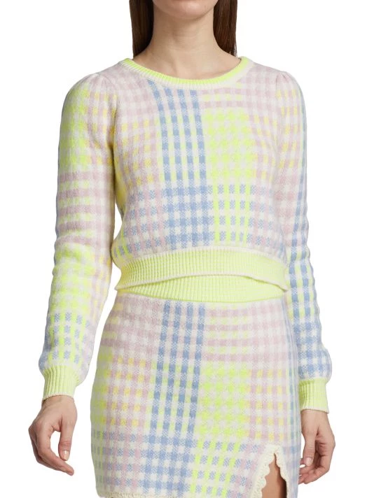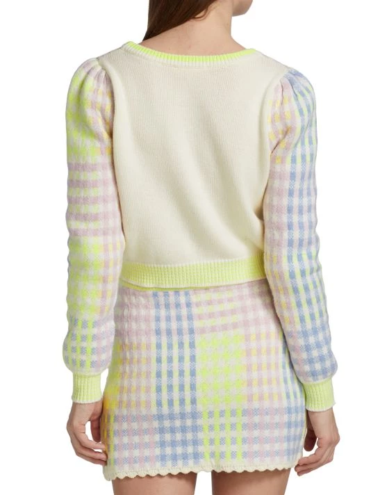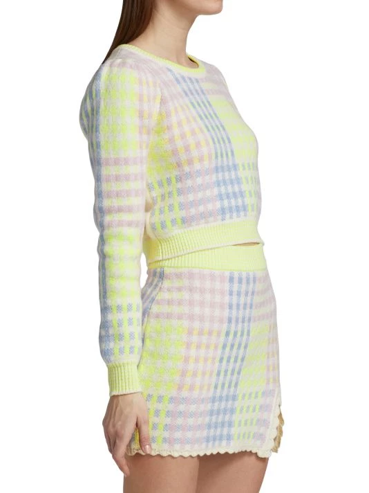 Featuring a crew neckline, LoveShackFancy’s Dolana cropped sweater is crafted of a cotton-wool blend with a multicolored check intarsia pattern.