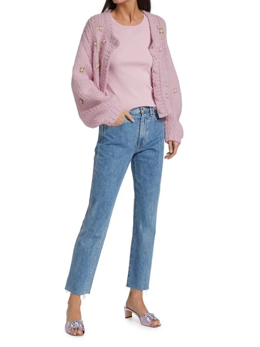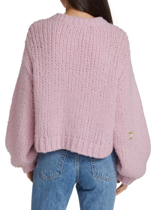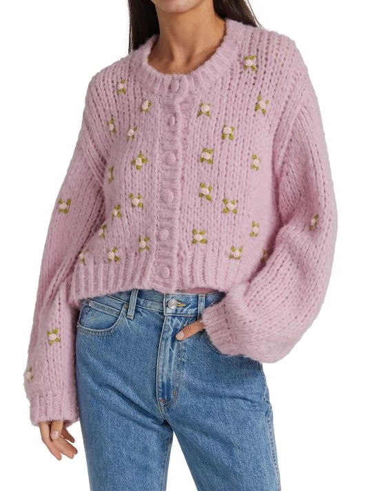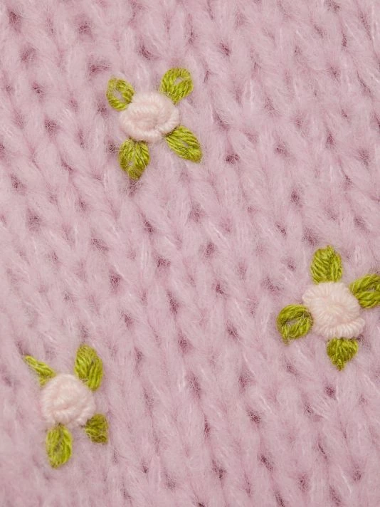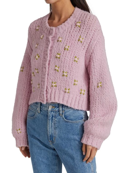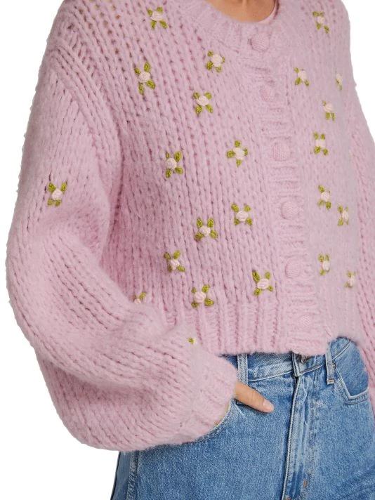 Sweet embroidered rosebuds embellish this relaxed-knit alpaca cardigan.