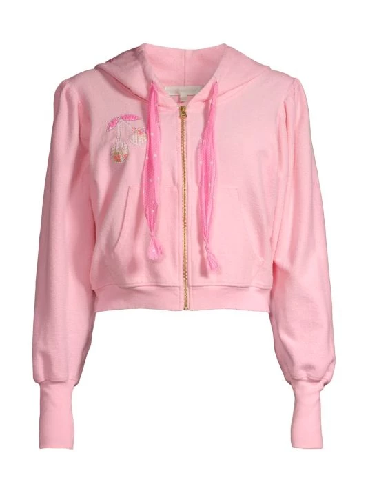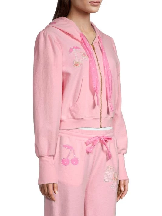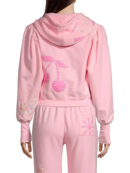 Finished with cherry and bow appliques, LoveShackFancy’s Hasana hoodie is crafted of soft cotton terry.