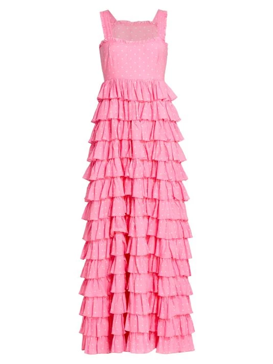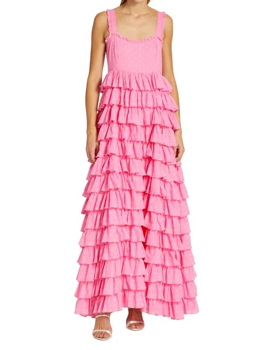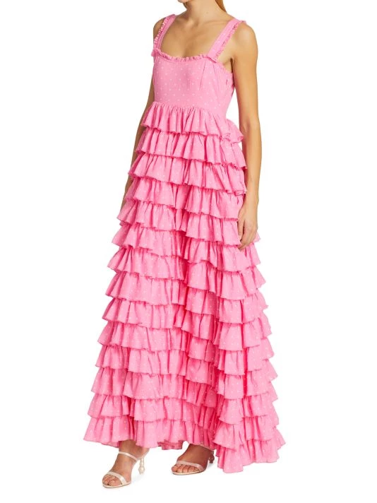 Layers of ruffles cover this occasion-ready gown, crafted with a fitted sweetheart bodice.