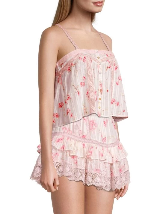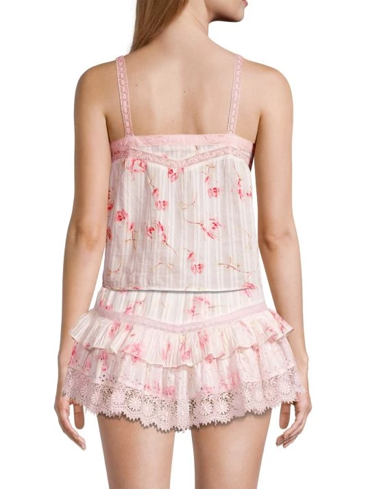 Crafted of breathable floral printed cotton, LoveShack Fancy’s Maitri tank top is trimmed with elegant lace panels.