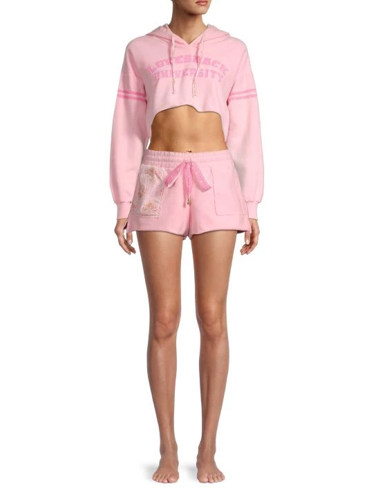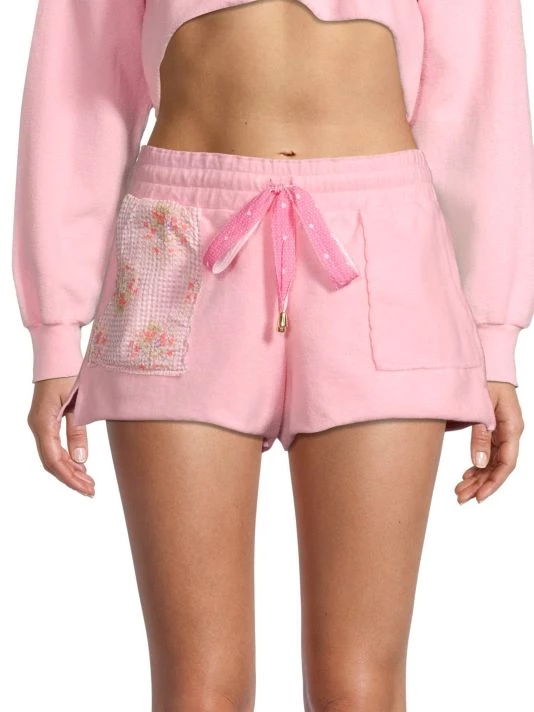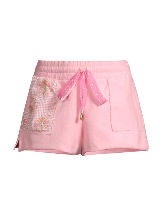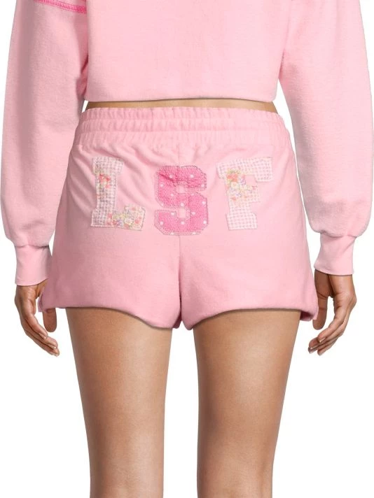 The Malala shorts by LoveShackFancy are decorated with ‘LSF’ floral patterned lettering at the rear.