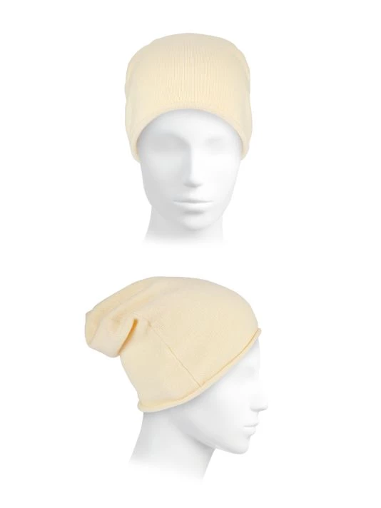 Rib knit with ultra soft cashmere, this beanie is finished with a rolled trim.