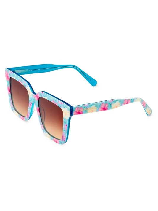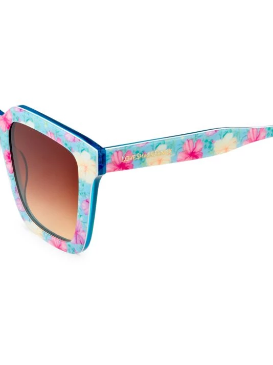 LoveShackFancy’s Novella sunglasses are designed with bold square frames. This pair is finished with a signature foiled logo at the temples.