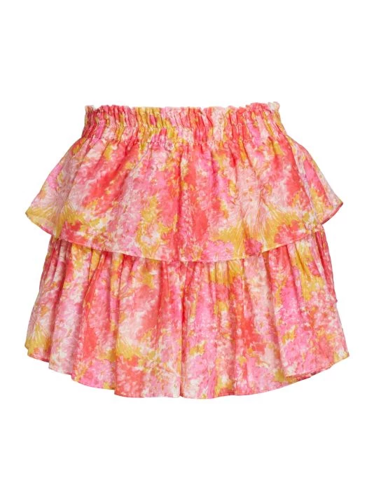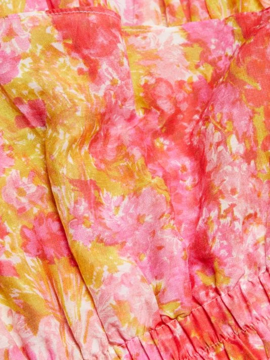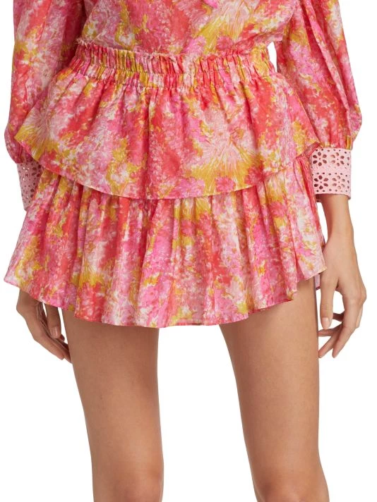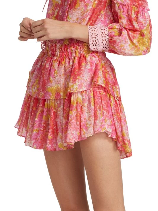 This ruffled skirt is crafted from a cotton and silk blend with an abstract print.