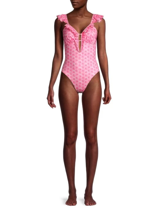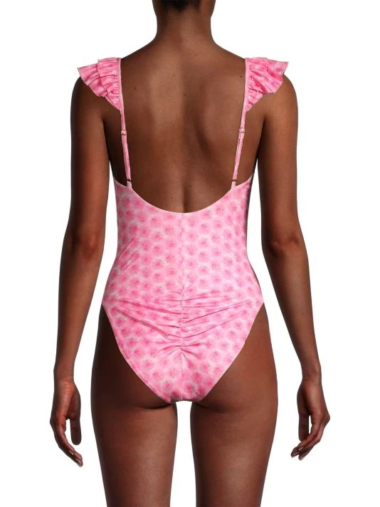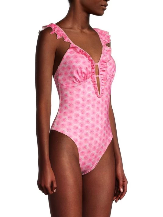 Flaunting a plunging V-neck, LoveShackFancy’s Tibbie swimsuit is detailed with elegant ruffled edges.