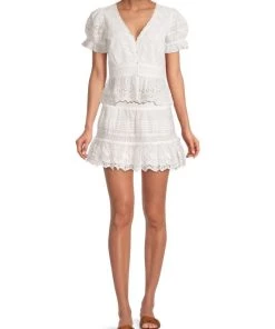 LoveShackFancy Jimena Eyelet Mini Skirt