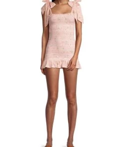 LoveShackFancy Norna Smocked Tie-Shoulder Minidress